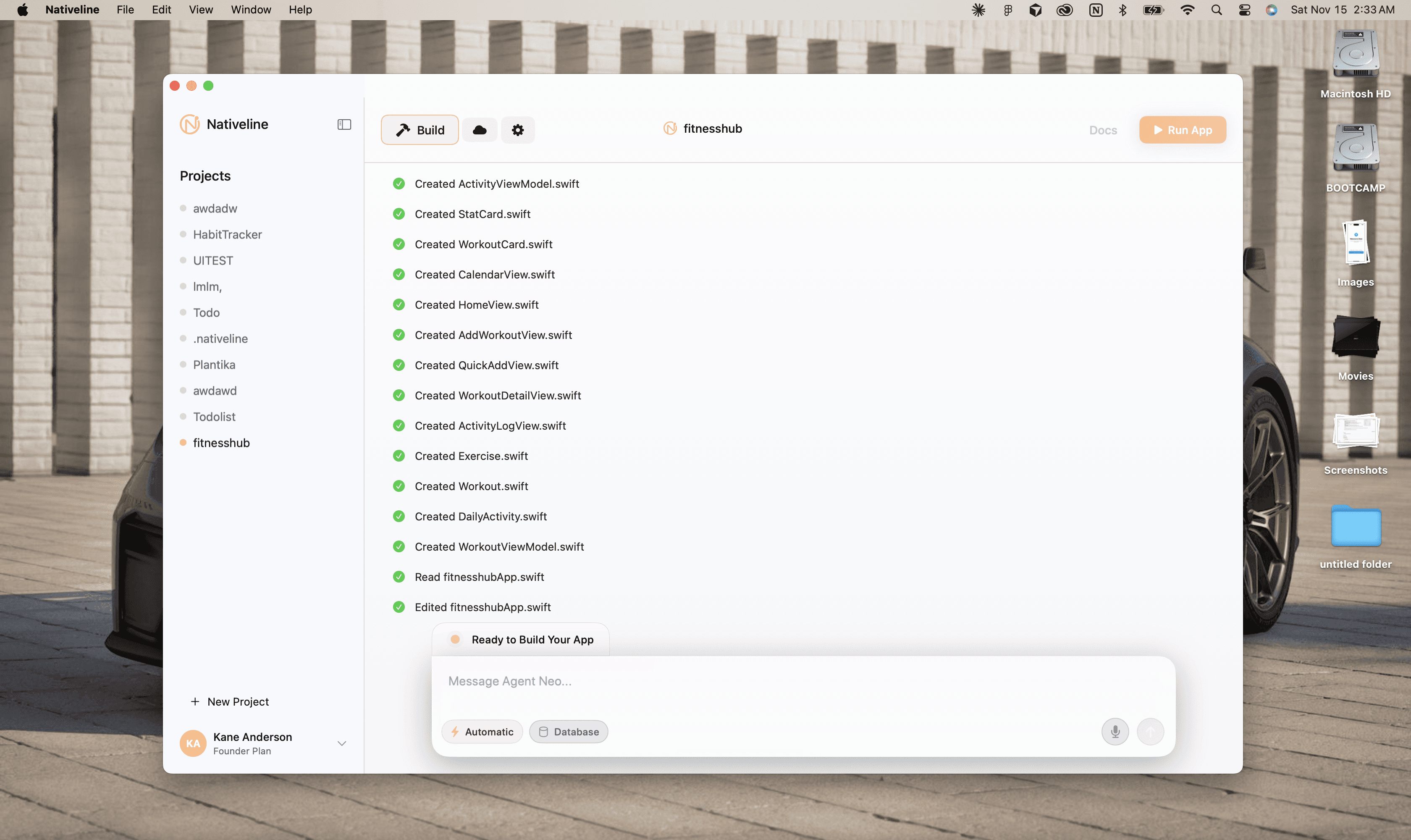 Nativeline creates real SwiftUI apps using Apple’s own tools—Xcode, SwiftData, CloudKit, plus Supabase for realtime and community features. No wrappers, no hacks. Just apps that actually feel at home on iPhone.