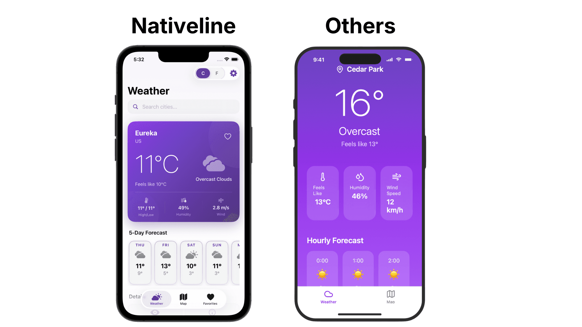 Left is Nativeline. Right is everyone else. Your users will feel it.