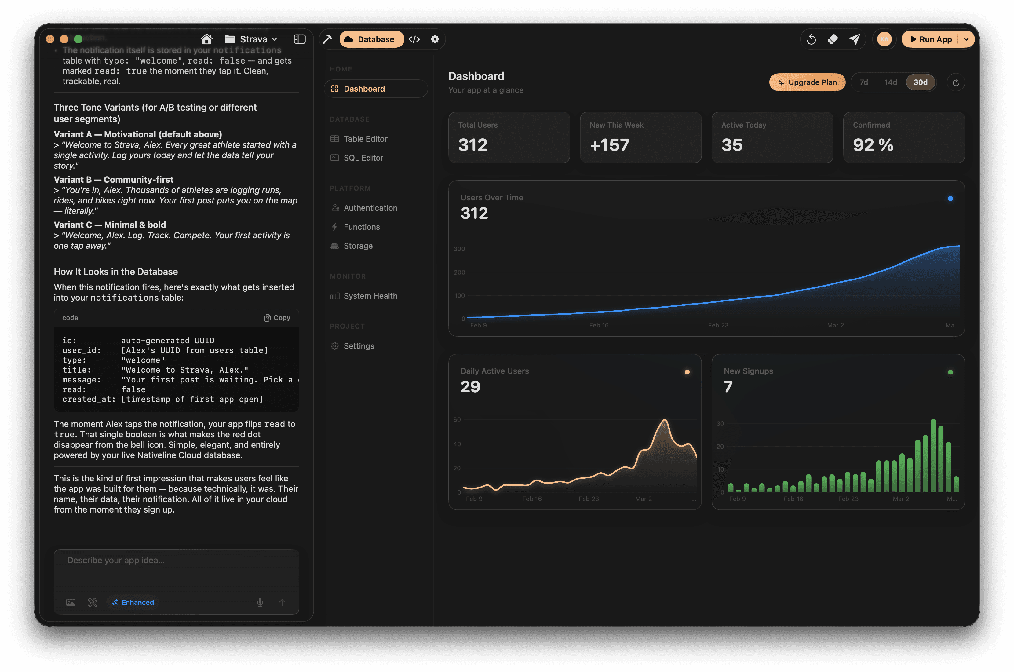 NativeLine lets you build real native Swift & SwiftUI apps for iPhone, iPad, and Mac by describing what you want. AI builds the app, the database, and the Xcode project — ready for the App Store. Download for Mac — It's Free